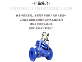 安全持压泄压阀AX742X-16Q,专为消防及其他供水系统设计,其核心功能在于防止系统超压,同时维持消防供水系统的稳定压力。在系统压力骤增时,它能迅速开启,释放多余压力,确保系统循环畅通无阻;而在压力恢复正常后,又能自动关闭,保持系统压力稳定。这一特性,使得AX742X-16Q成为保障供水系统安全运行的不可或缺的一环。